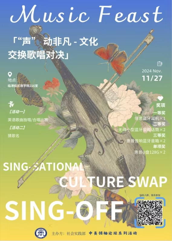 On November 27, 2024, the "Sing Sational Culture Swap Sing off" ("Voice" Moving Extraordinary - Cultural Exchange Singing Duel) Sino US Song Theme Event, hosted by the Social Practice Department of the School of Business at Shanghai Dianji University, was successfully held in Room 216 of the Business School at the Lingang Campus. This event has attracted the active participation of many students from the business school, building a vibrant bridge for cultural exchange between China and the United States.